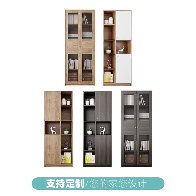 书柜现代简约带门防尘格子柜组合立柜窄柜储物柜置物书架落地实木