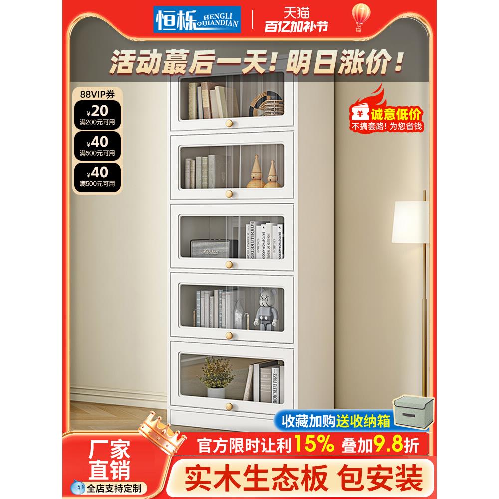 实木书柜带门家用儿童角落书架网红美式电视墙边窄柜展示置物收纳