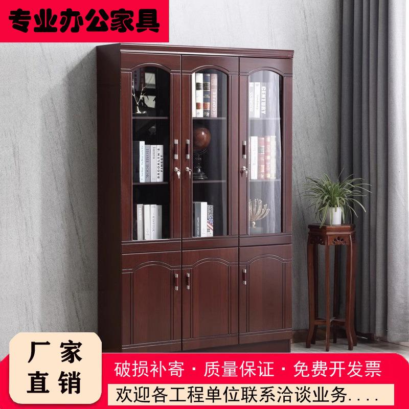 办公室文件柜新中式实木书柜带门组合柜中式家用书柜书架玻璃书橱