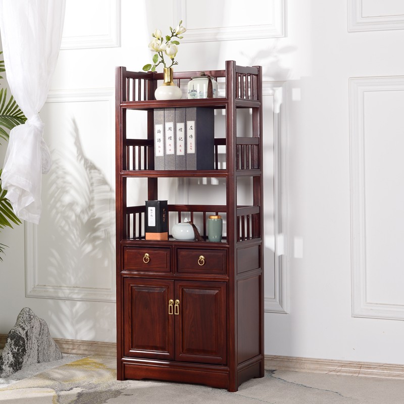 新中式实木书柜带门窄柜卧室书架客厅收纳柜多层置物架茶边柜落地