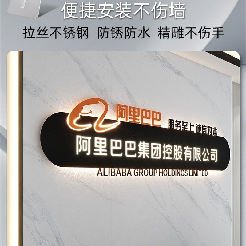 公司背景墙logo制作招牌定制门头门牌铁艺背发光广告牌发光字定做