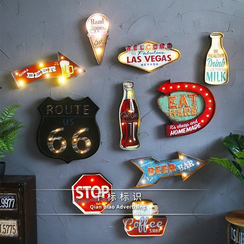公司复古铁艺墙面logo制作艺术字圣诞节广告牌电池款发光牌灯箱