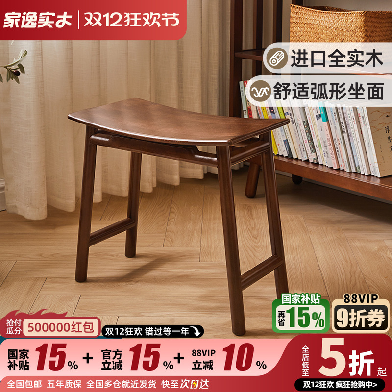 家逸实木凳子餐凳餐椅新中式家用客厅换鞋凳化妆凳梳妆凳简约矮凳