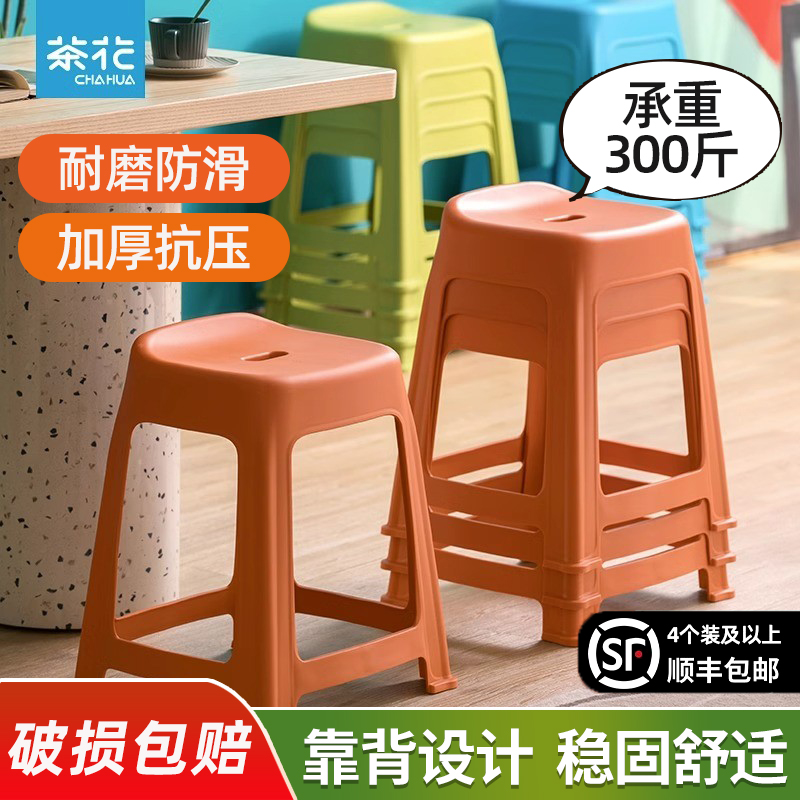 茶花塑料凳子加厚家用贝壳高凳成人耐用椅子板凳洗澡凳可叠放餐凳