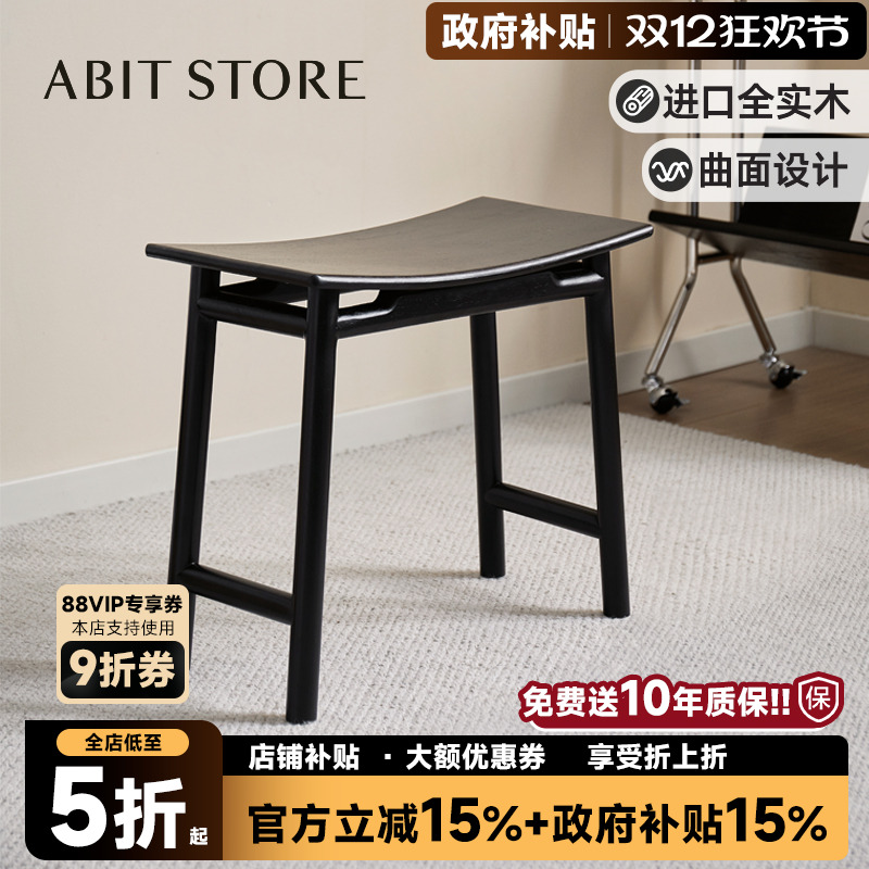 爱必居实木凳子新中式餐凳梳妆凳家用矮凳换鞋凳化妆凳黑色马鞍凳