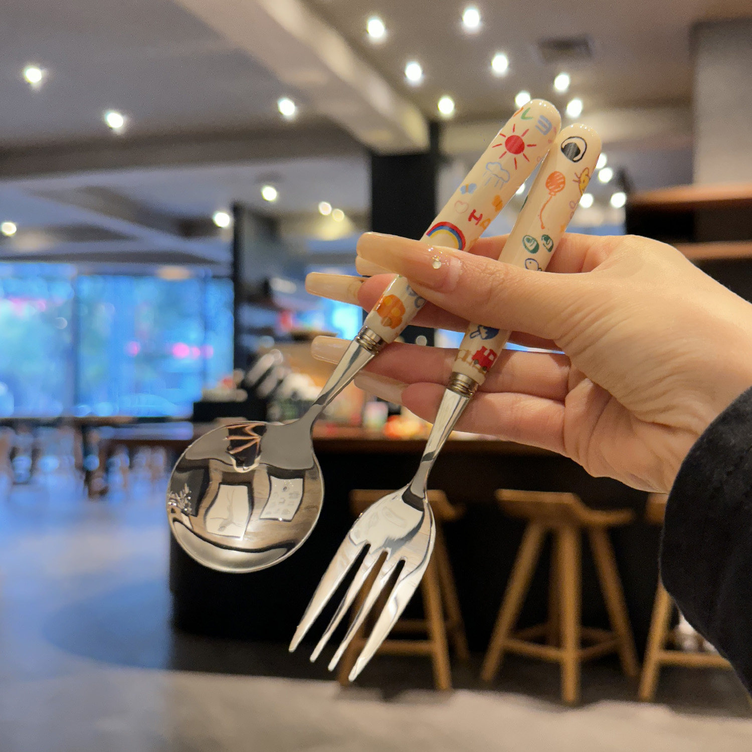 【老板娘家里自用可爱】304不锈钢干饭勺叉陶瓷手柄 儿童饭勺叉