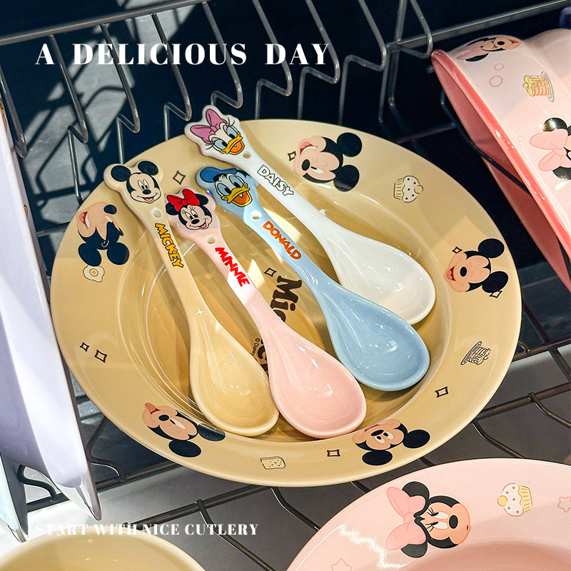 迪士尼陶瓷调羹可爱造型喝汤匙家用勺子高颜值儿童饭勺创意甜品勺