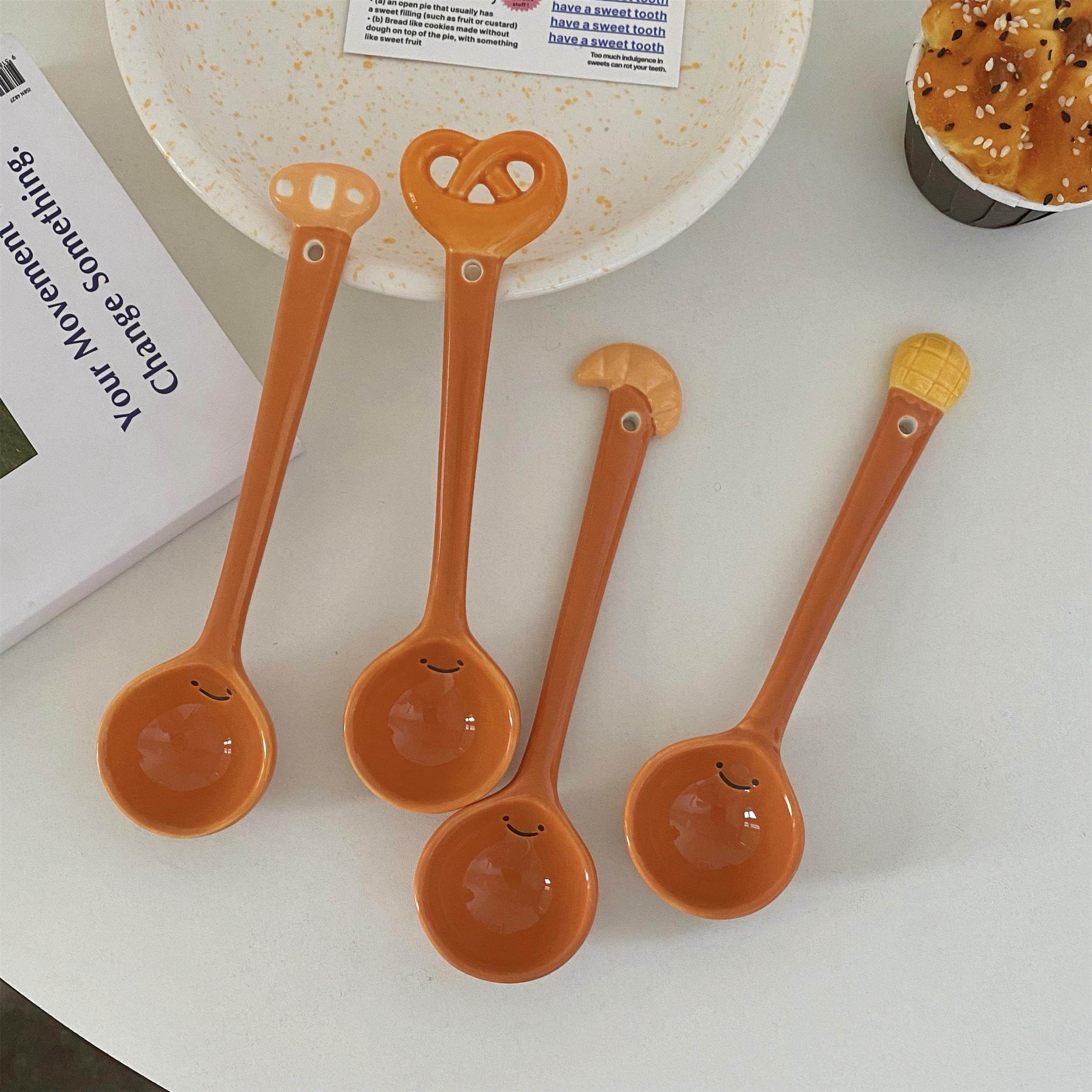 面包勺子陶瓷长柄汤匙可爱创意调羹儿童饭勺甜品勺家用个人小勺子