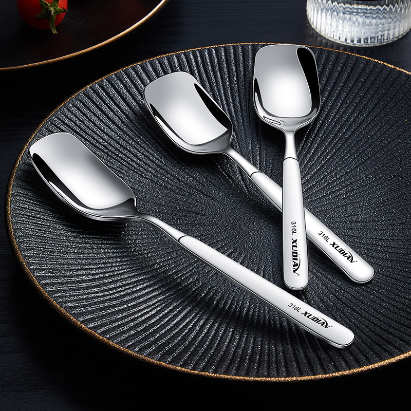 食品级316不锈钢勺子家用汤勺18/10儿童饭勺方头餐勺喝粥勺西瓜勺