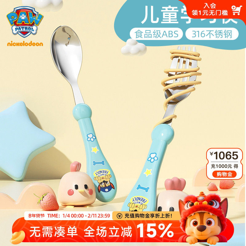 汪汪队儿童饭勺辅食勺子316不锈钢宝宝吃饭调羹幼儿辅食勺叉餐具