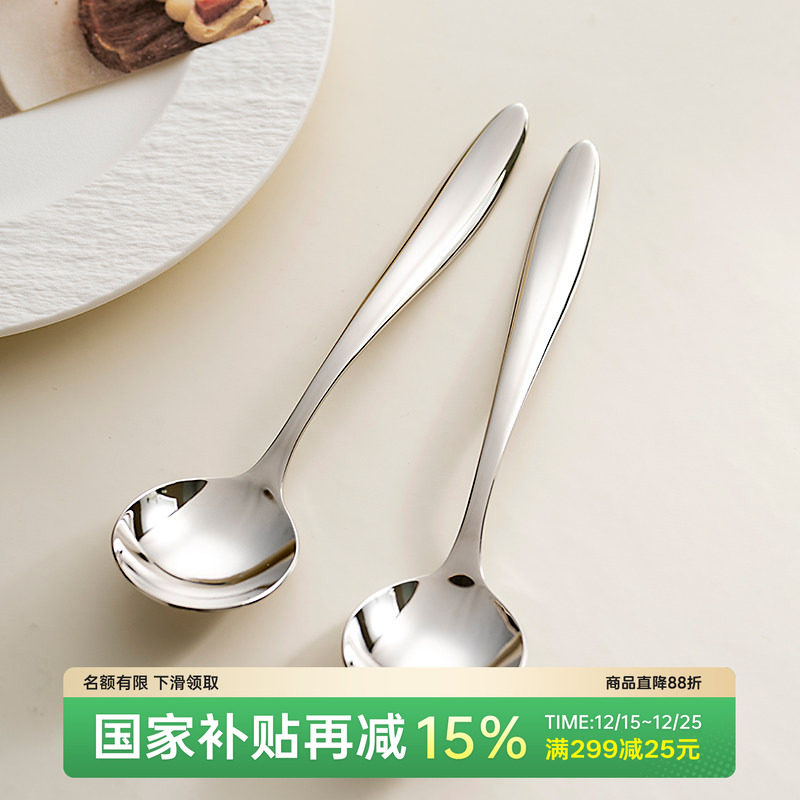 不锈钢勺子304食品级家用主餐勺小勺甜品勺加厚儿童饭勺汤匙汤勺