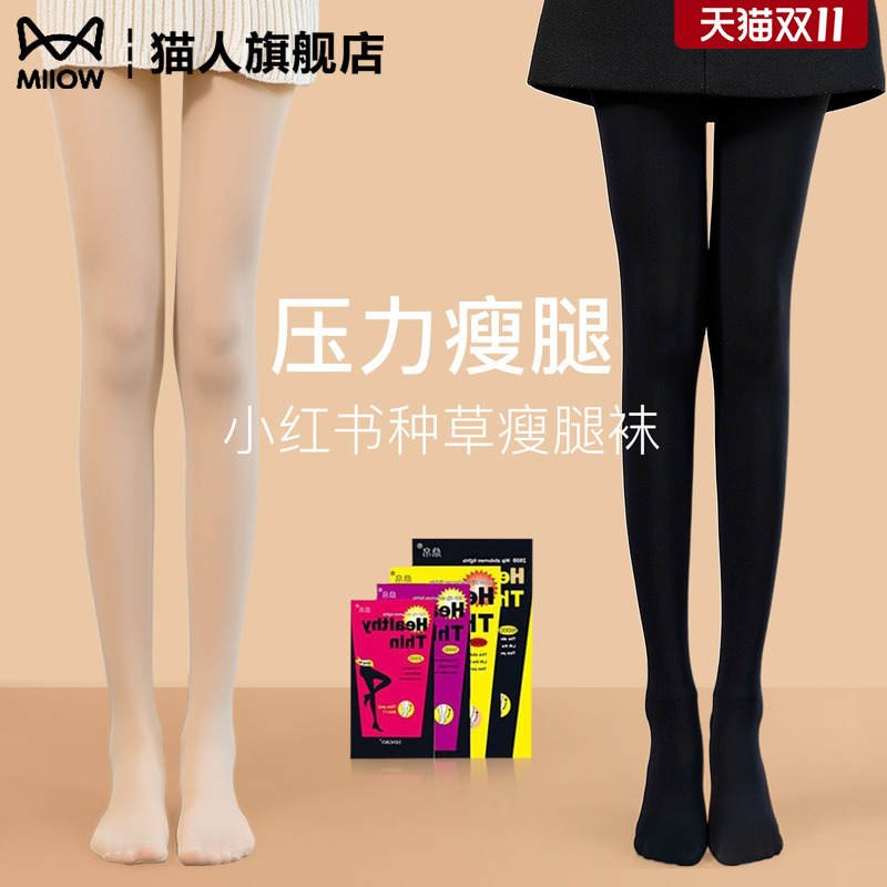 猫人压力袜女瘦腿袜光腿神器强压黑色丝袜秋冬加绒加厚打底连裤袜