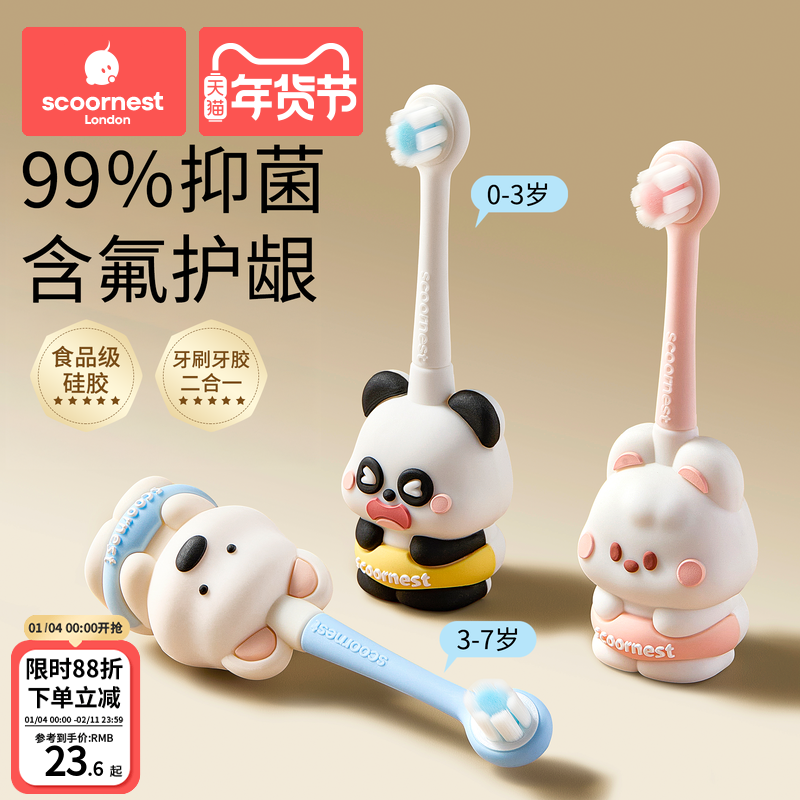 科巢儿童牙刷含氟软毛宝宝婴儿乳牙刷膏01到3到6岁婴幼儿专用清洁