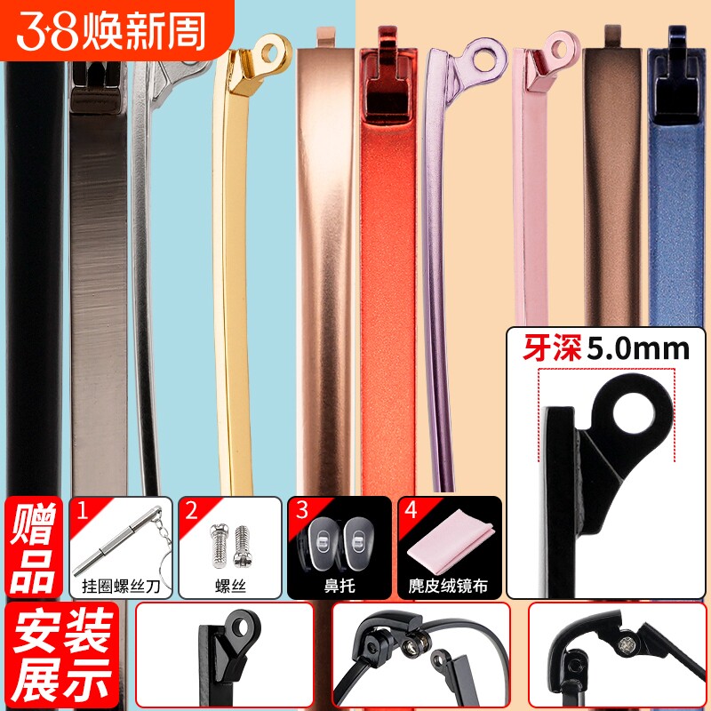 金属眼镜腿一对矮牙眼镜框架配件男女眼睛脚腿支架边通用维修更换