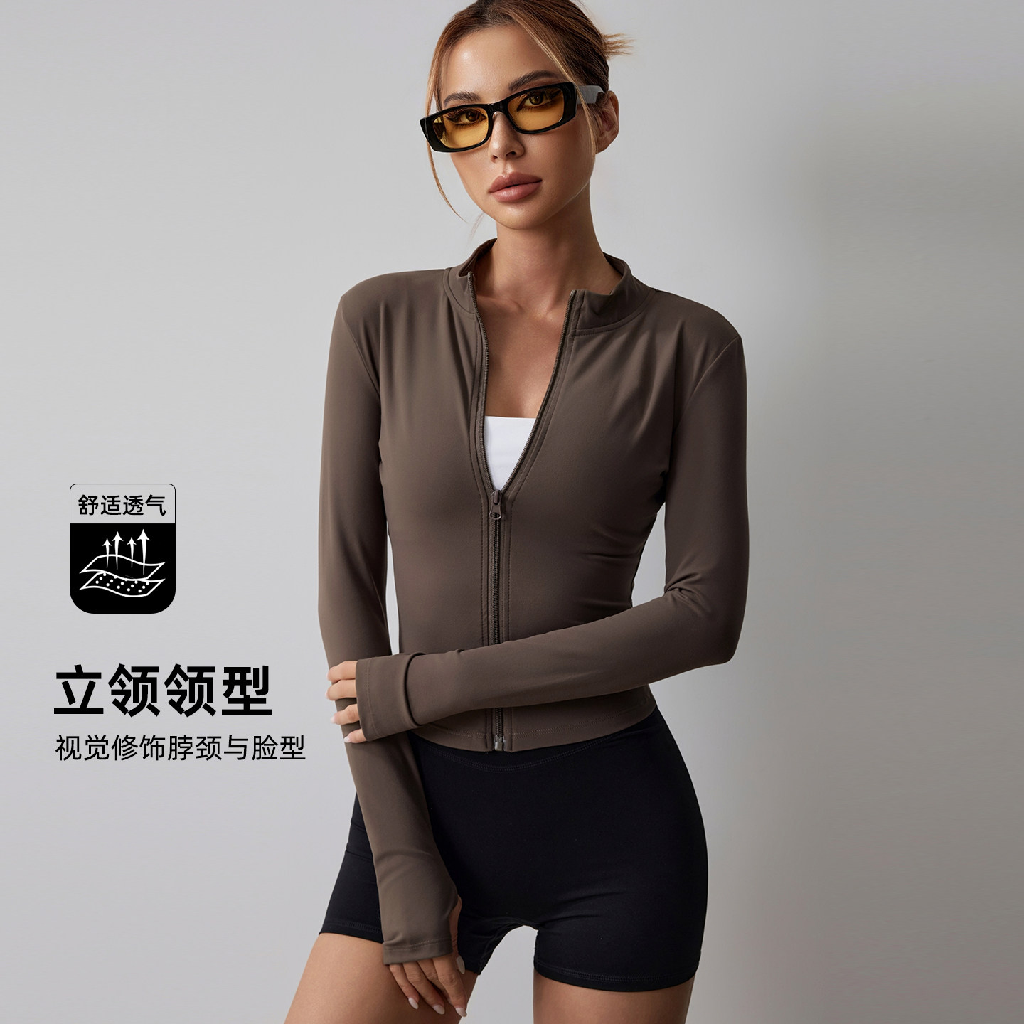 健身女孩薄绒瑜伽服外套秋冬立领修身运动上衣显瘦普拉提训练长袖