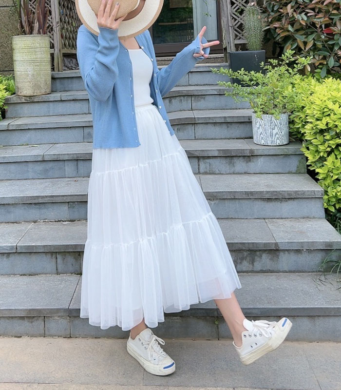 PIT复古白色镂空钩花A字半身裙女2025夏波西米亚薄款透气中长裙