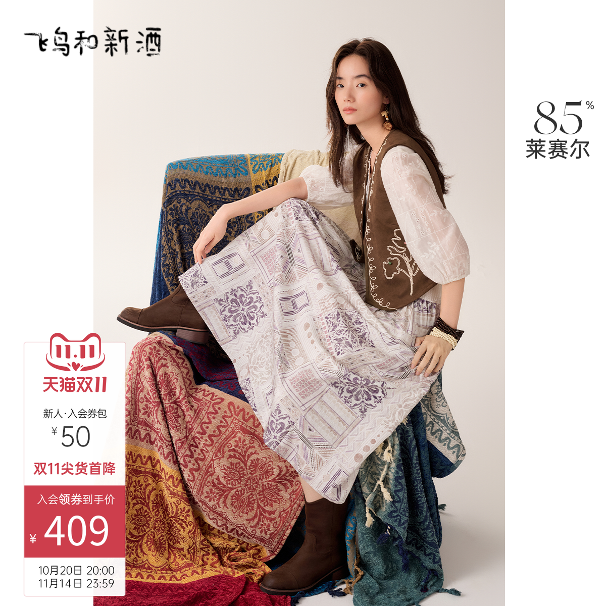 飞鸟和新酒松紧腰半身裙中长款2025秋季新款设计感波西米亚风裙