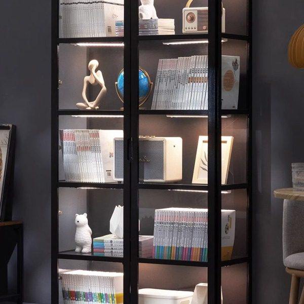 实木书柜不占地方的展示柜家用客厅玻璃门书架落地置物架一体靠墙