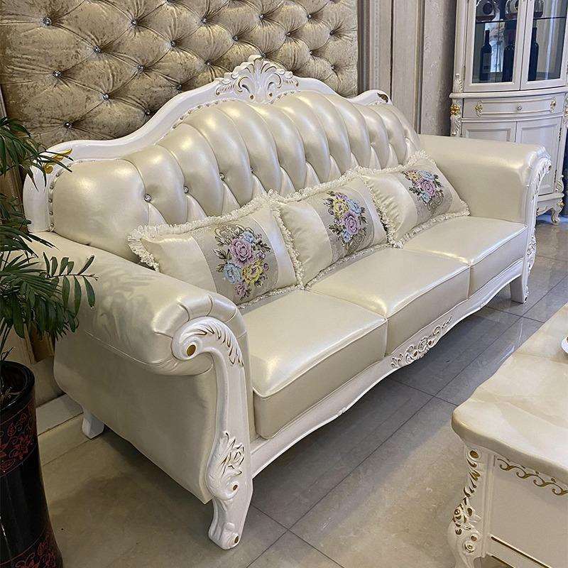 欧式真皮沙发小户型客厅现代简约白色美式整装经济型拉扣沙发组合