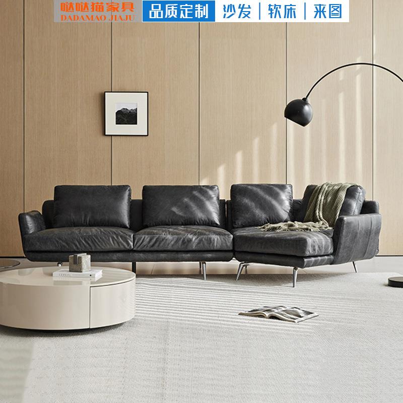 中古风油蜡真皮沙发客厅大户型复古轻奢羽绒高脚异形转角组合沙发