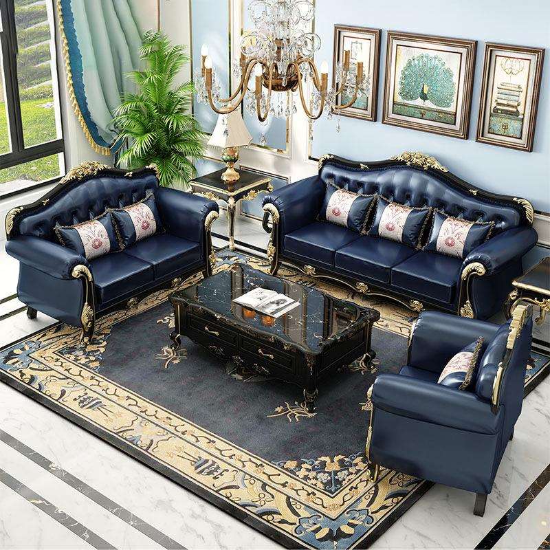 真皮沙发头层牛皮客厅组合三人位实木雕花家用欧式厚皮艺大小户型