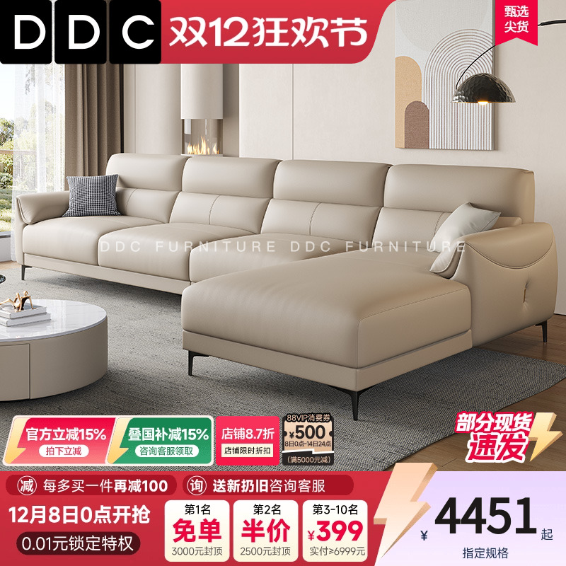 DDC 意式极简真皮沙发组合现代简约大小户型客厅头层牛皮转角沙发
