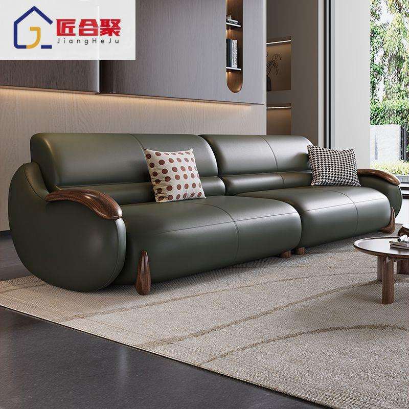 极简古风高端真皮沙发大小户型组合意式轻奢客厅胡桃木新中式沙发