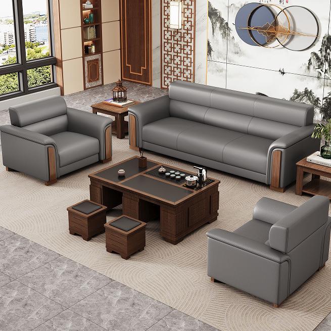 中式真皮沙发现代客厅家用乌金木沙发小户型简约组合加厚直排沙发