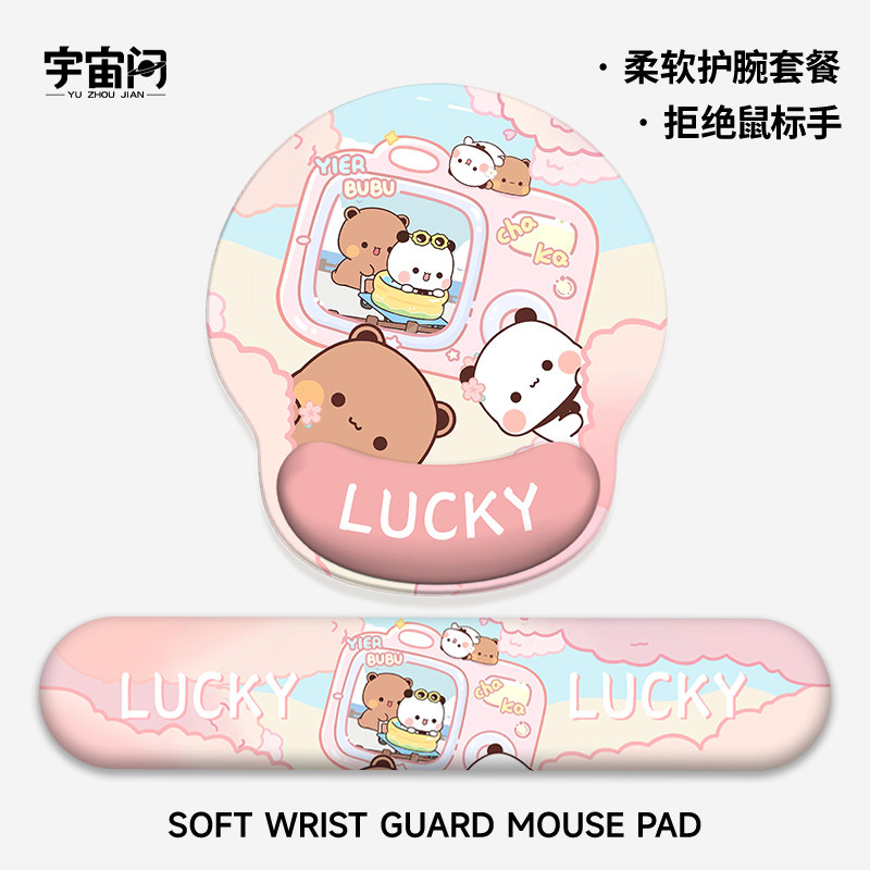 可爱一二布布护腕鼠标垫电脑键盘枕套装男女卡通硅胶手枕腕枕防滑