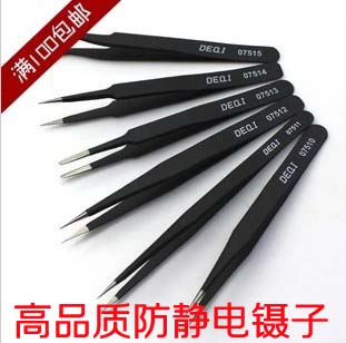 不锈钢精密黑色ESD 防静电镊子 尖头 弯头拆机工具 带卡纸