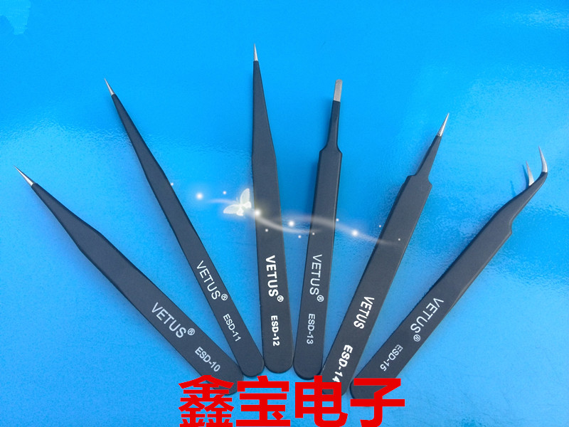 VETUS防静电镊子 高精密不锈钢镊子 尖头 弯头镊子 防静电夹子