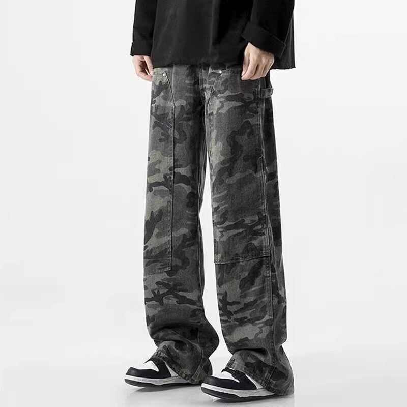 PAPASLILMONSTER【阔腿迷彩】美式复古风宽松迷彩长裤街头休闲裤