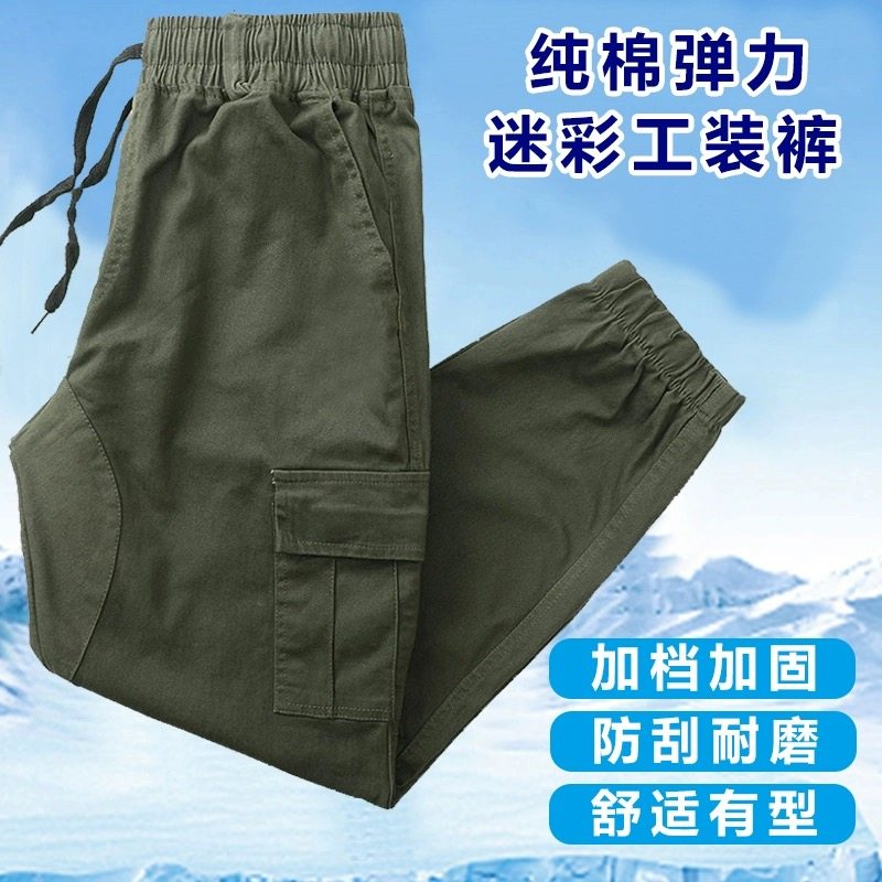 包穿三年纯棉工装裤男迷彩长裤劳保裤中青年宽松长裤耐磨直筒裤子
