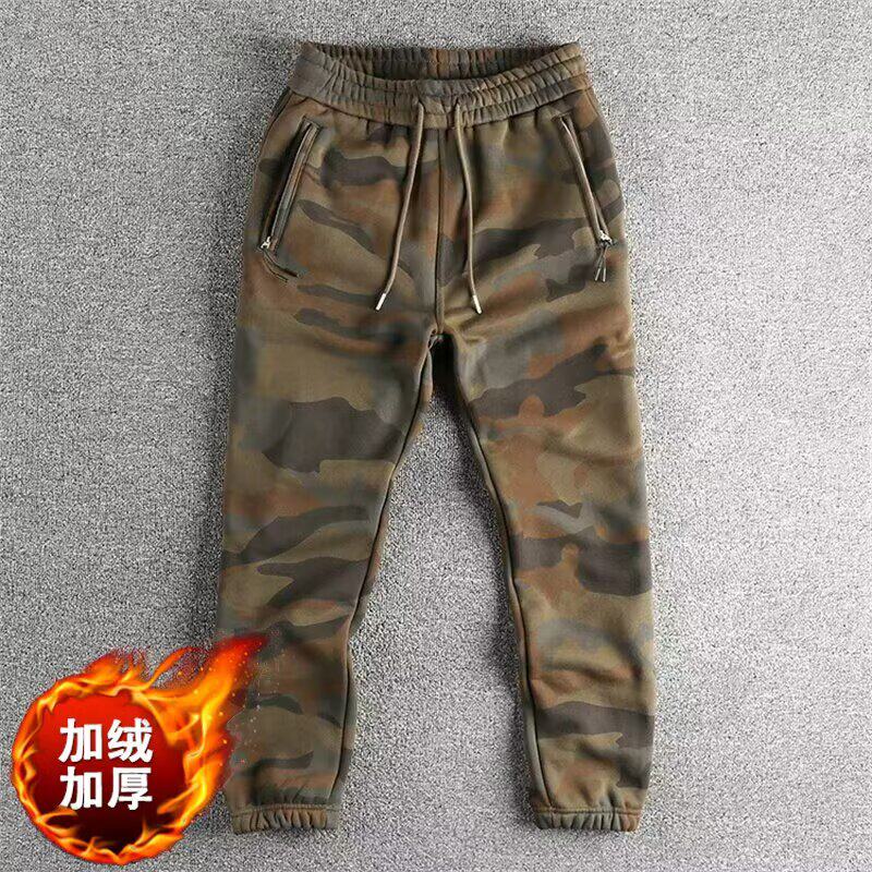 冬季加厚抓绒缩口机车长裤宽松大兜大码迷彩长裤工装裤子男款抗寒