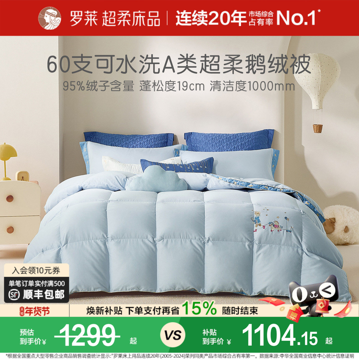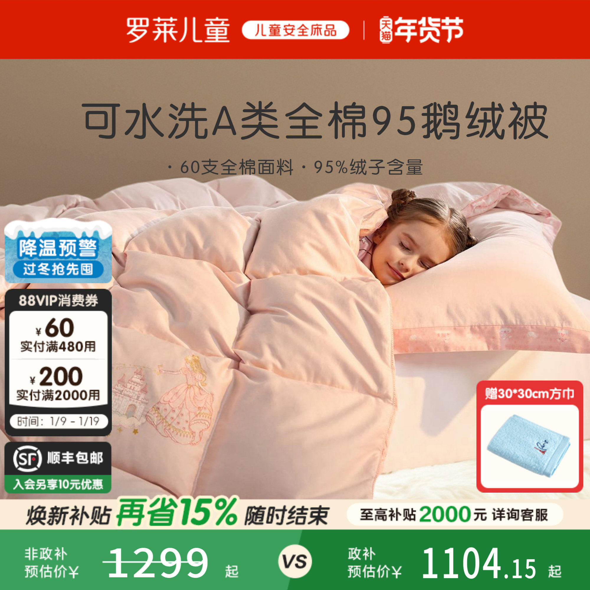 罗莱儿童秋冬新品被子A类全棉95鹅绒被可水洗四季被冬被羽绒被