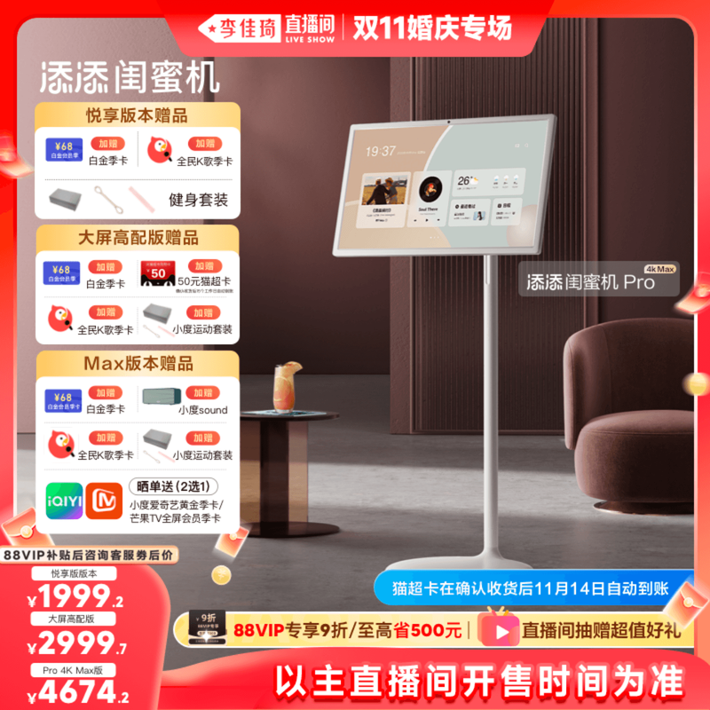 【李佳琦直播间现货美妆节】小度添添闺蜜机大平板投影仪升降智慧语音控制可移动智慧AI随心屏自由随心移动