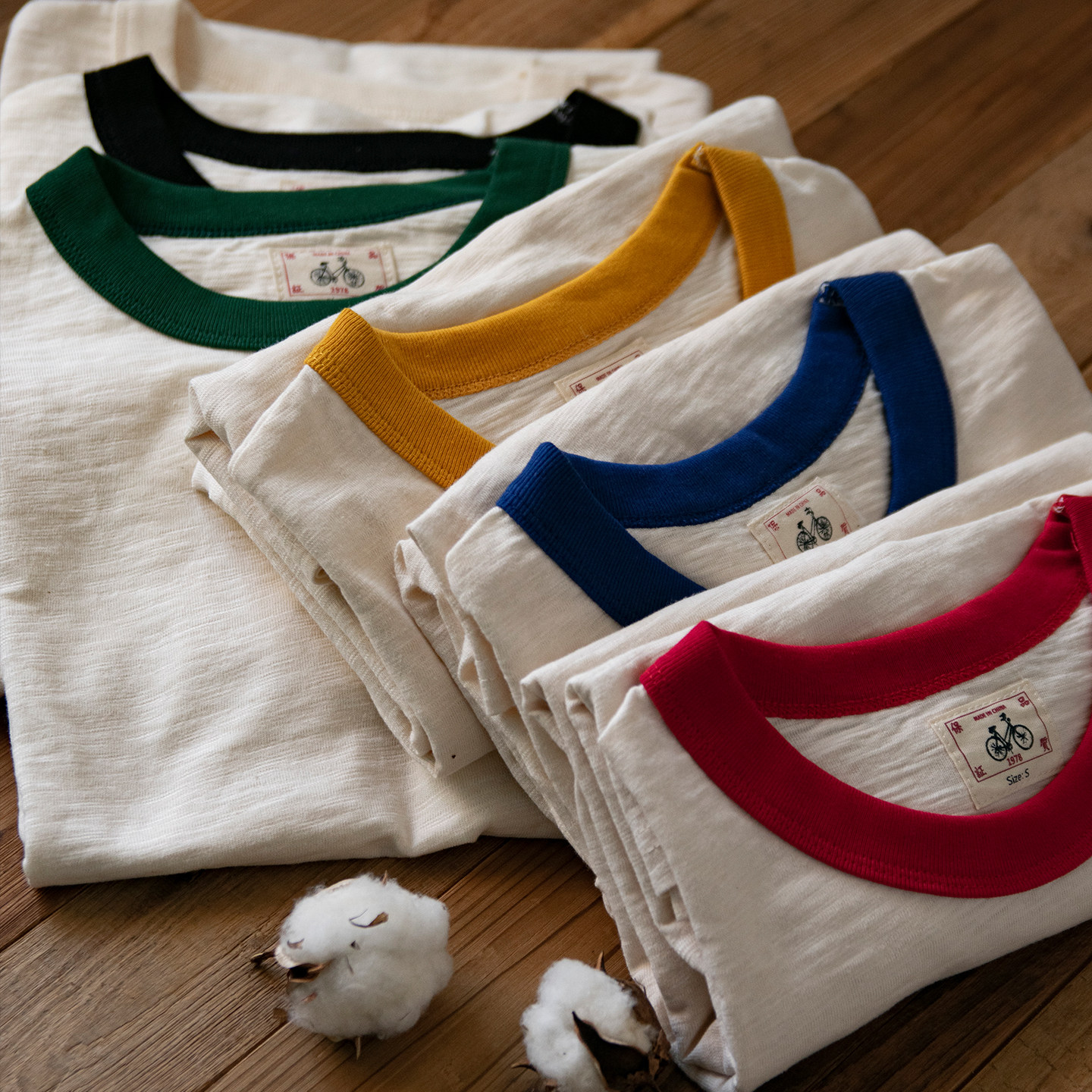 复古怀旧竹节棉螺纹撞色短袖T恤男女纯棉水洗阿美咔叽圆领文化衫