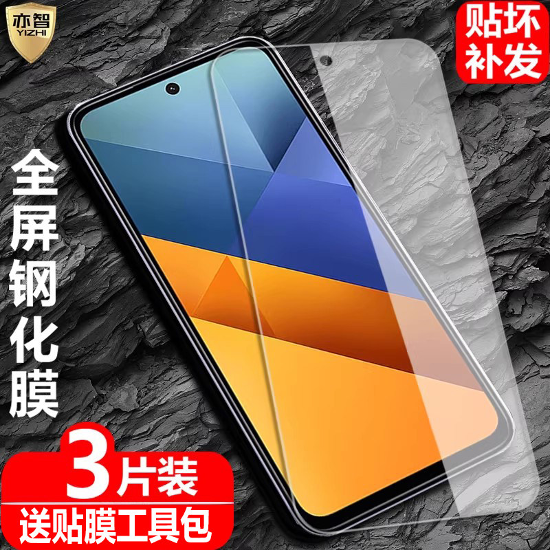 适用小米POCO M5钢化膜poco M5S全屏覆盖MIUI防爆玻璃膜xiaomi海外版手机高清抗指纹护眼防蓝光保护贴