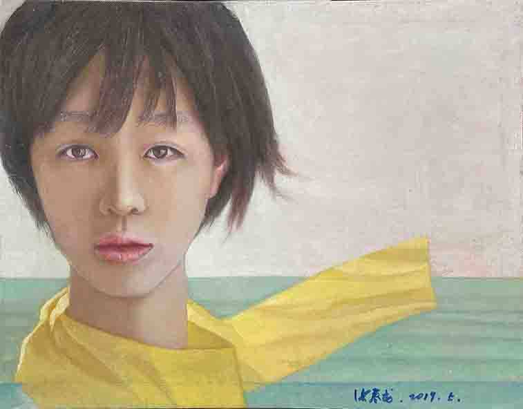 少女与海,张春龙人物肖像油画,网红理发美发美甲女装服装店面内饰