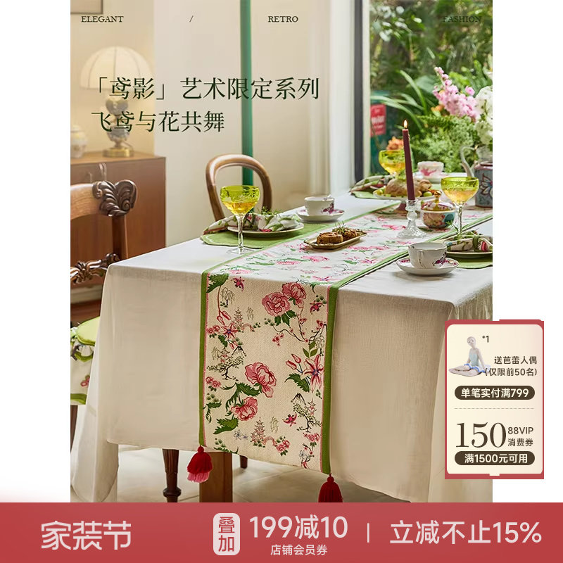 蜡笔派榴羽桌旗复古轻奢高端电视柜盖布客厅茶室茶旗2026新款W