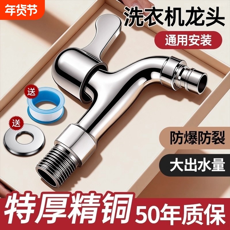 全铜洗衣机专用水龙头4分水嘴入墙式阳台拖把池家用快开防冻正品
