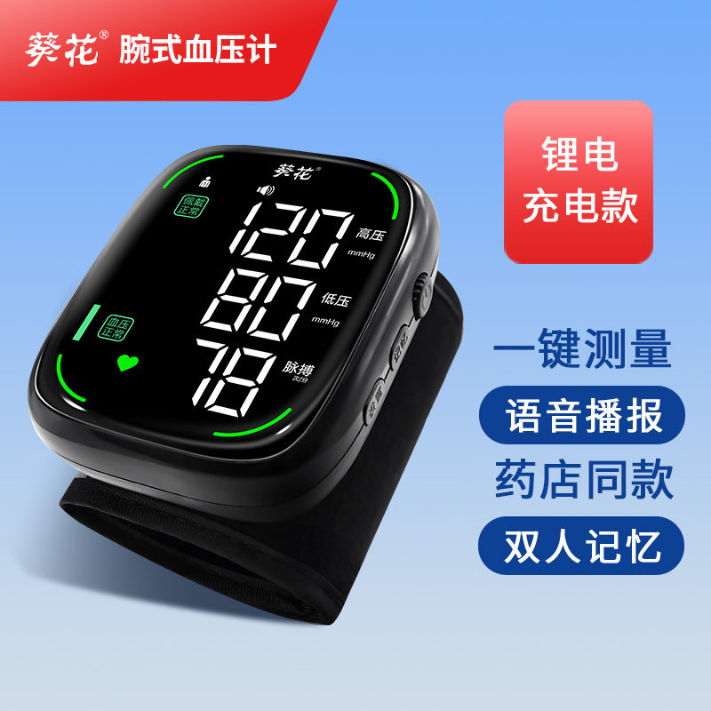 葵花电子血压计手腕式血压测量仪医用家用高精准血压计全自动充电