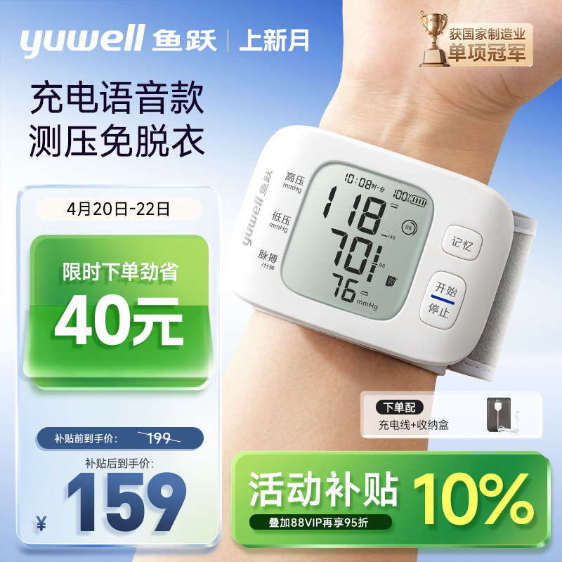 鱼跃手腕式电子血压计家用医院专用高血压官方精准医用测血压正品