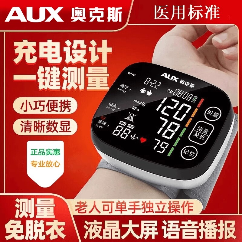 奥克斯手腕式电子量血压测量仪家用高精准测压医用充电正品计器表