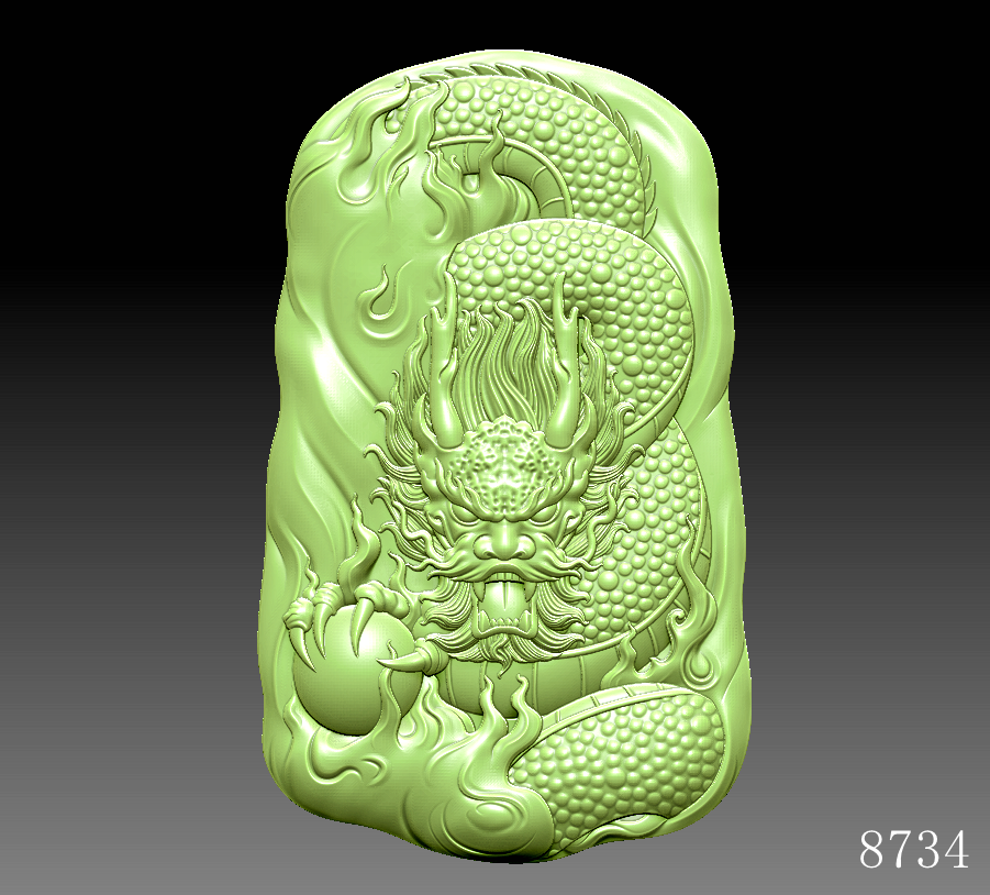 8734双面祥云龙牌挂件圆雕图3d打印模型三维立体图stlobj格式数据