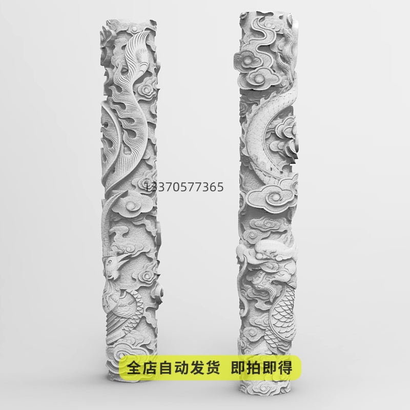 蟠龙柱仿古中式柱子3D打印模型三维立体素材图stl文件圆雕造景