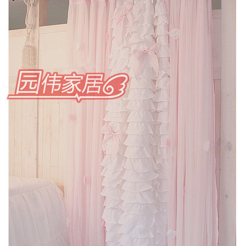 奶油风法式浪漫透光不透人防晒遮阳双层一体纱帘纯色花边客厅阳台