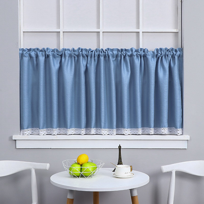 纯色环保亚麻纱帘免打孔粘贴短帘柜子遮挡小窗帘遮丑魔术贴半门帘