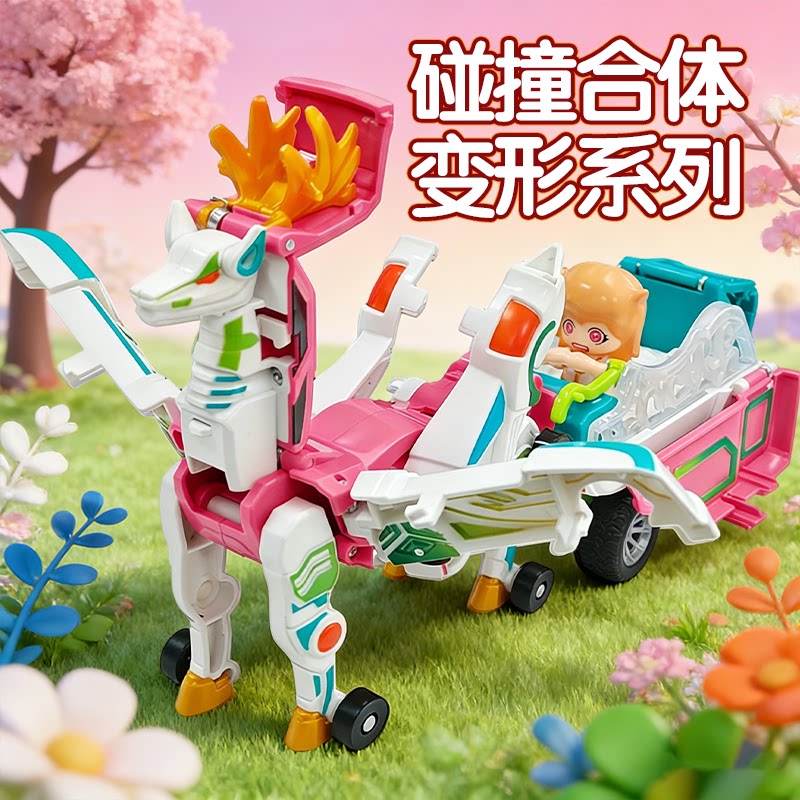 火星鹿合体碰撞魔幻变形银翼飞马咖宝车神弹跳磁吸小汽车男童玩具