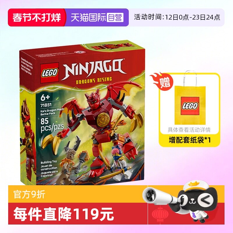 【自营】LEGO乐高幻影忍者系列71851凯的神龙战斗机甲玩具积木